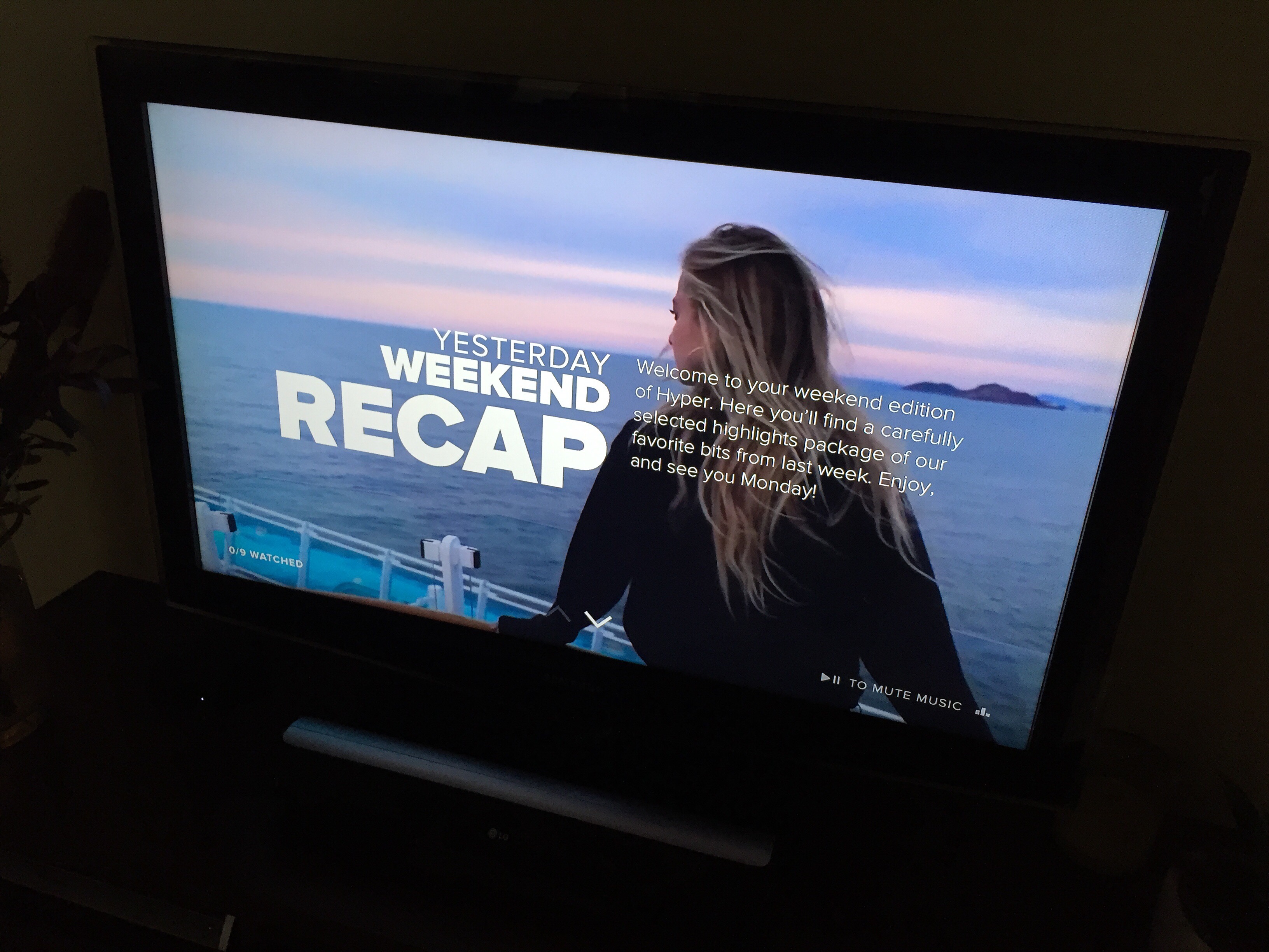 Hyper running on Apple TVNot only do they curate content for each day, they also group the best of the week into an easy weekend recap, so that you can catch up on what you might have missed.
