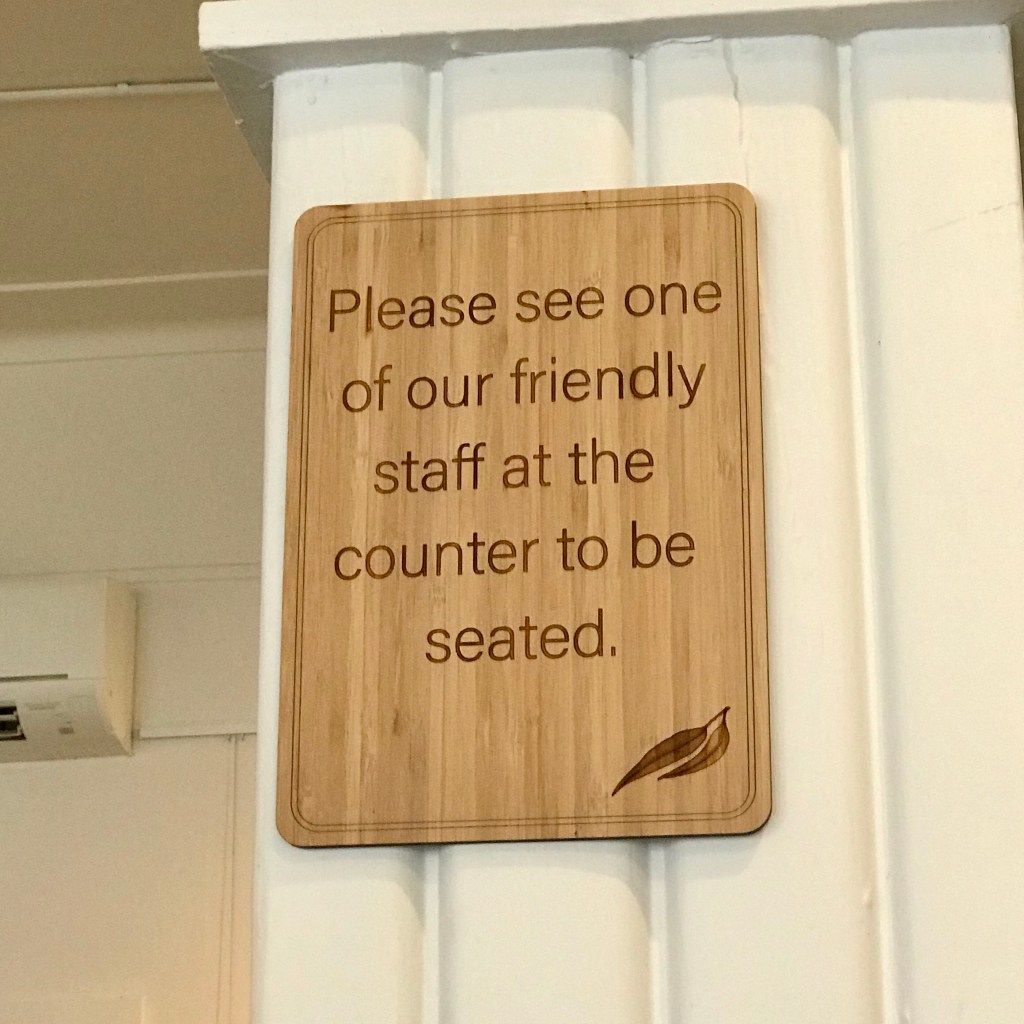 One of the most confusing things that patrons tend to encounter in any new café is whether they should wait at the door for someone to seat them, proceed to the counter or find a table by themselves. Clear signage at the entrance is key to avoiding such doubt.