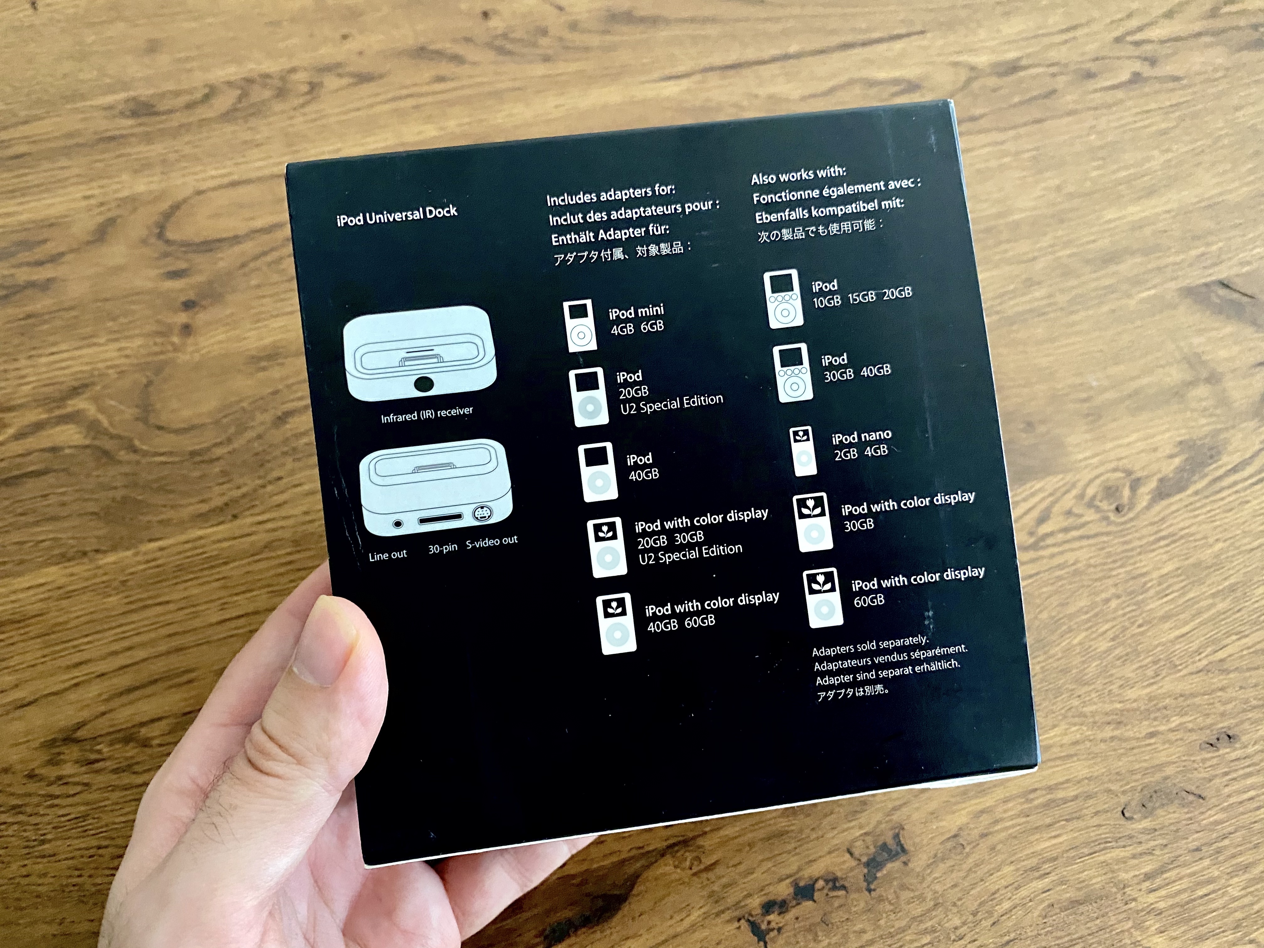 2020 iPod Universal Dock Box (Rear with Adapter List)